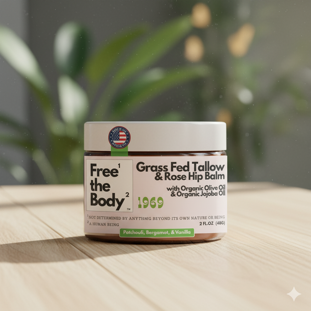 Grass Fed Tallow and Rose Hip Balm, Small Batch, 2 oz, 1969